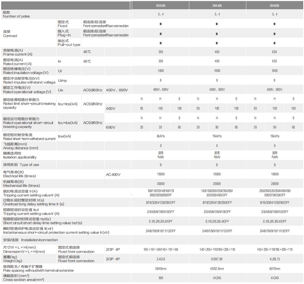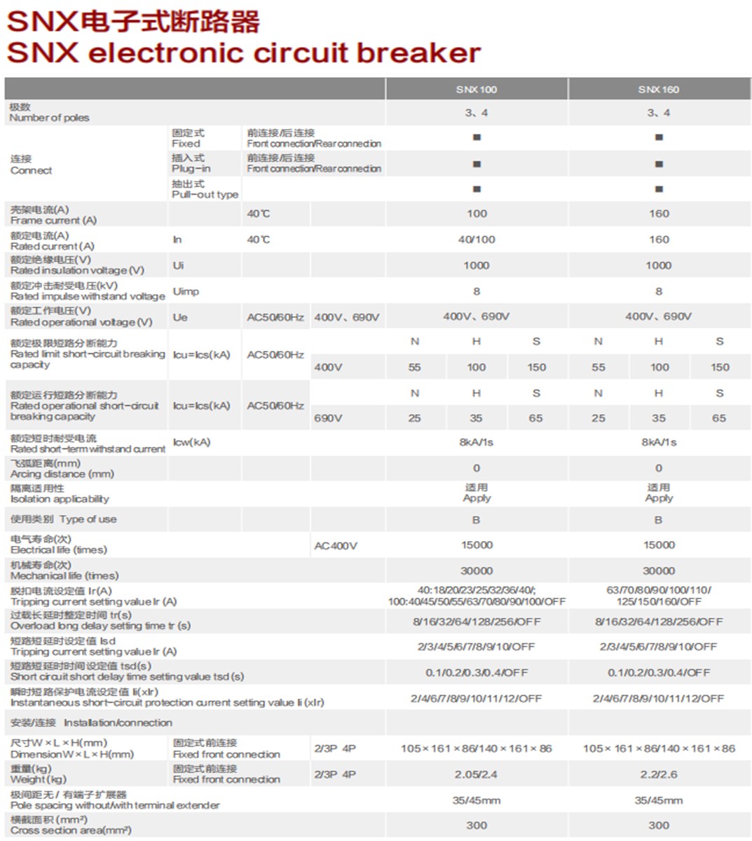 SNX热磁式断路器、 SNX电子式断路器、 SNX带剩余电流保护断路器