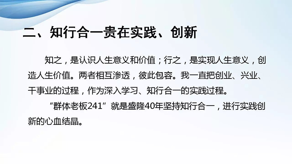 9月9日,华中科技大学管理学院2018级MBA开学典礼暨入学导航在管理学院学术报告厅举行,盛隆电气集团董事长谢元德以《知行合一与创新实践》为主题给学生们授课。