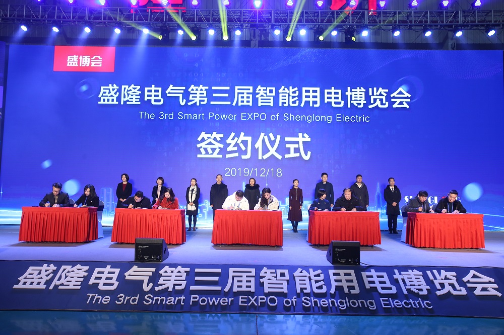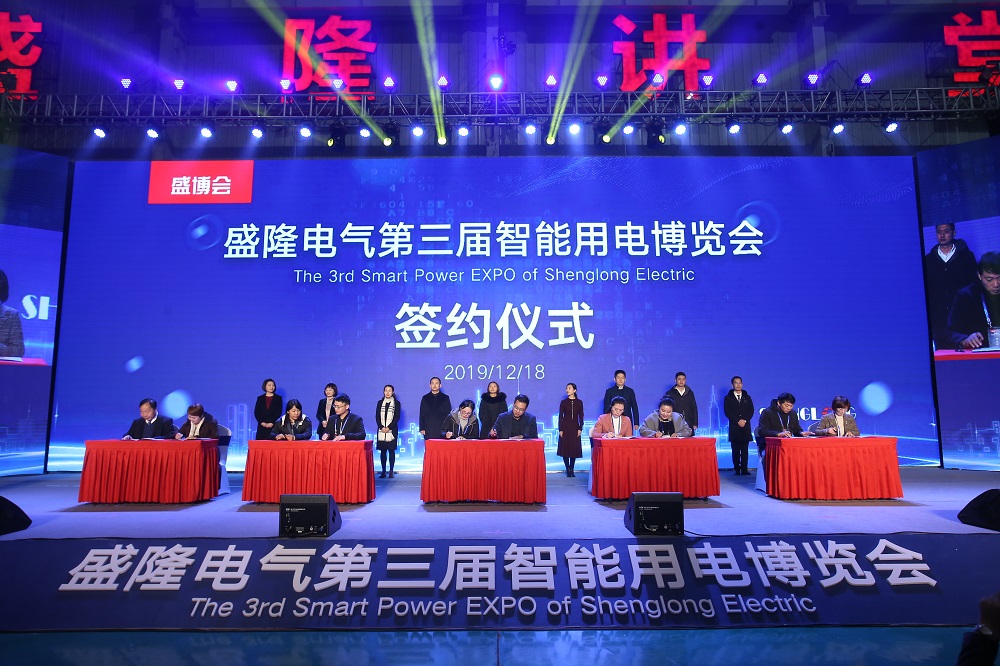 12月18日,盛隆电气第三届智能用电博览会盛大开幕。现场举行答谢客户仪式,“盛隆答谢代表团” 上台,答谢全体客户,并向十大客户代表赠送“智能用电保证20年无偿技术服务承诺书”。