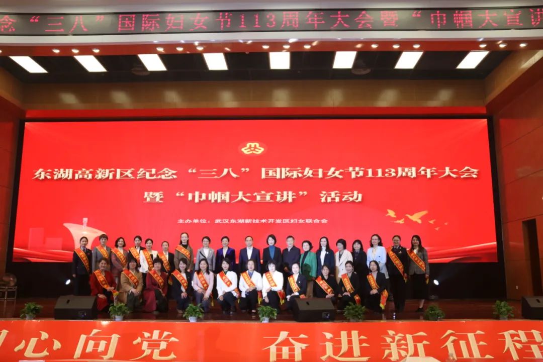 3月7日,武汉东湖高新区举行纪念“三八”国际妇女节113周年大会暨“巾帼大宣讲”活动。智慧工厂副总经理董玲获“新时代巾帼英雄”称号,并作事迹宣讲。湖北省妇联党组成员、副主席李燕出席并讲话,武汉市妇联党组书记、主席魏静出席,东湖高新区党工委委员、管委会副主任沈阳东致辞。获奖者合影(董玲为前排右四)董玲(中)...2023-03-08 -
