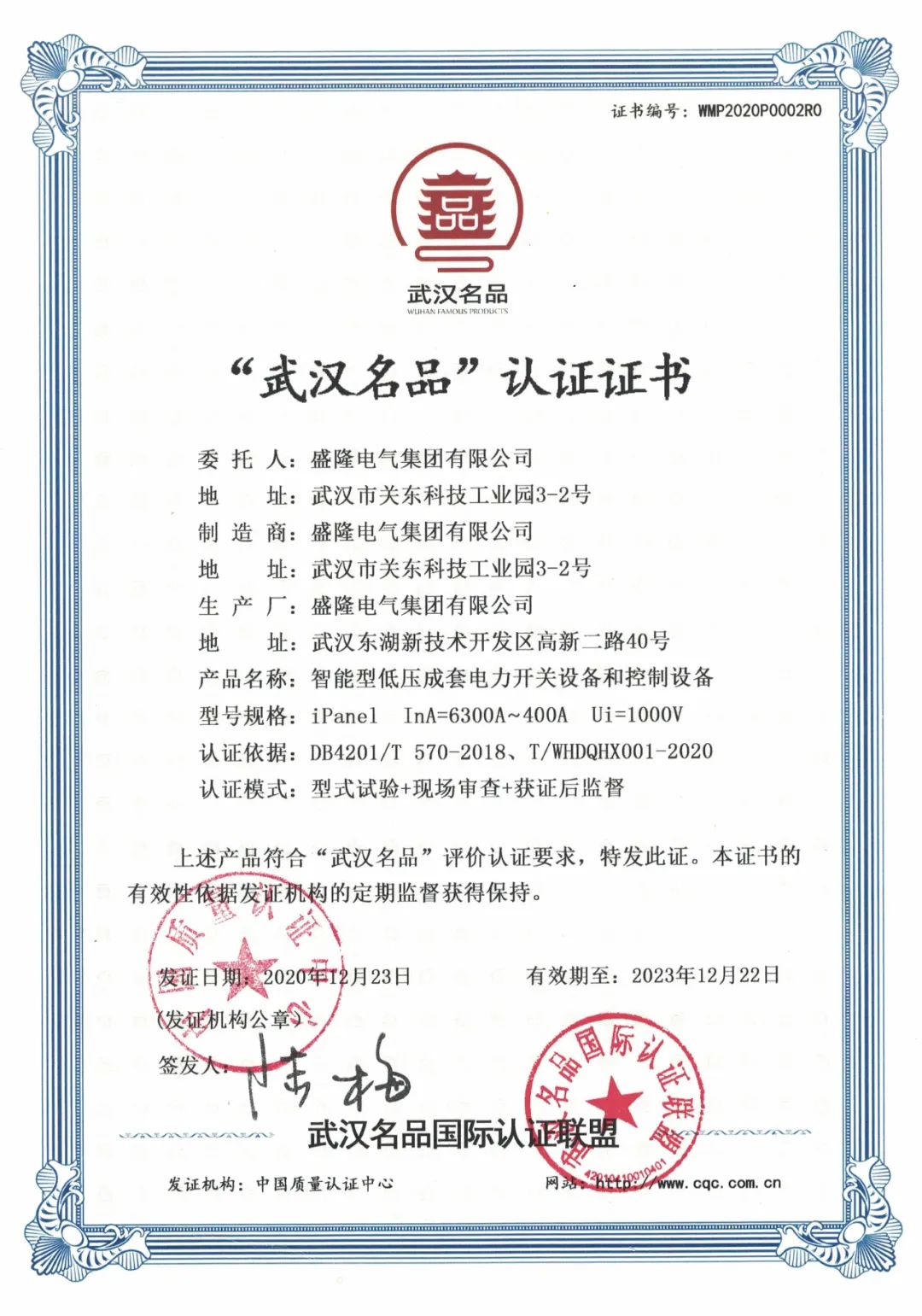 近日,武汉市质量强市工作委员会通报2021年“武汉名品”认定结果,30家企业的产品(服务)被认定为“武汉名品”,盛隆电气iPanel智能型低压成套电力开关设备和控制设备榜上有名!“武汉名品”是代表武汉制造业和服务业先进性的区域品牌形象标识,是武汉市产品高端质量的代名词。符合标准要求的优质产品,将支撑武汉品牌建设...2022-03-30 -