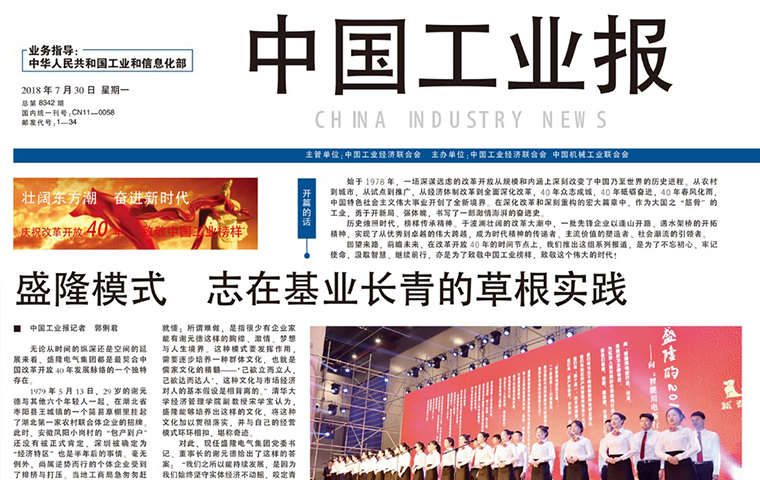 工信部部长苗圩对盛隆电气给予充分肯定 《中国工业报》头版头条报道盛隆电气